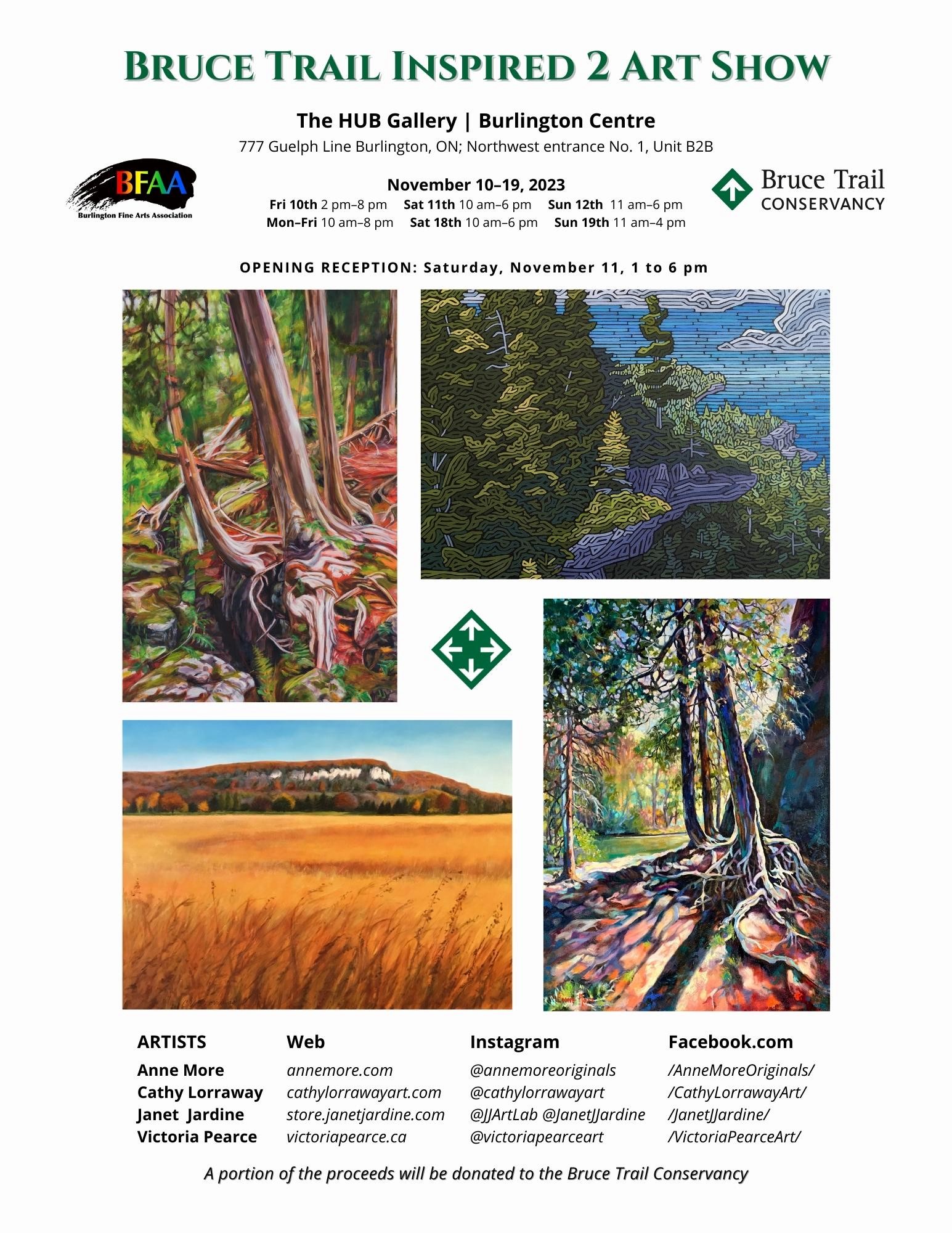 The Bruce Trail Inspired 2 Art Show and Sale showcases the beauty of the Bruce Trail. A portion of all proceeds will be donated to the Bruce Trail Consevancy to support and maintain the trail.