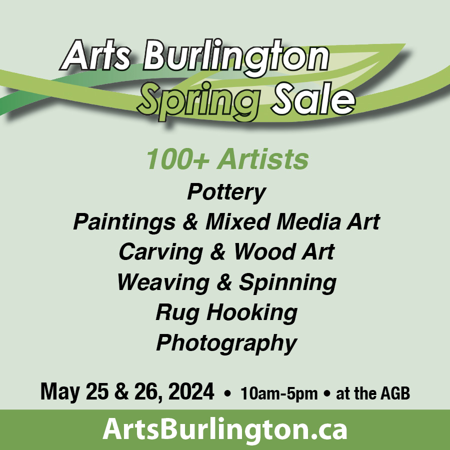 100+ artists will be showcasing their finest works in our bi-annual art show and sale on Saturday and Sunday, May 25-26 from 10-5, at the Art Gallery of Burlington. Each of the 6 Guilds of Arts Burlington will be showcasing their hand-crafted work in clay, paint, wood, fibre or photo. Come to enjoy the show and take home a unique Burlington-maker piece.