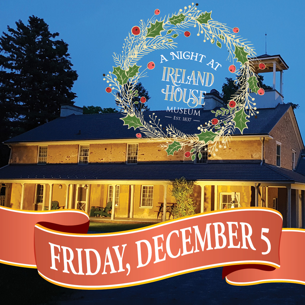 Eat, drink and be merry! Step back in time and celebrate the holidays during “A Night At Ireland House.” Guests will spend the evening sampling traditional Victorian foods served from the hearth and woodstove while touring the historic house. There...