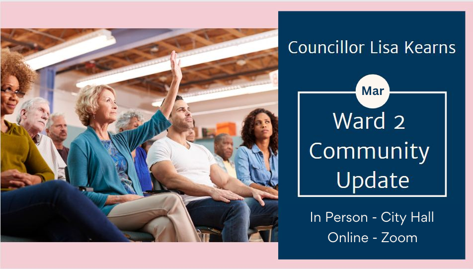 Be part of the conversation. Join Ward 2 Councillor Lisa Kearns for the Ward 2 Community Update. This important event provides residents with the opportunity to hear key City and community updates directly from Councillor Kearns and to engage in meaningful dialogue about the issues that matter most to our Ward.